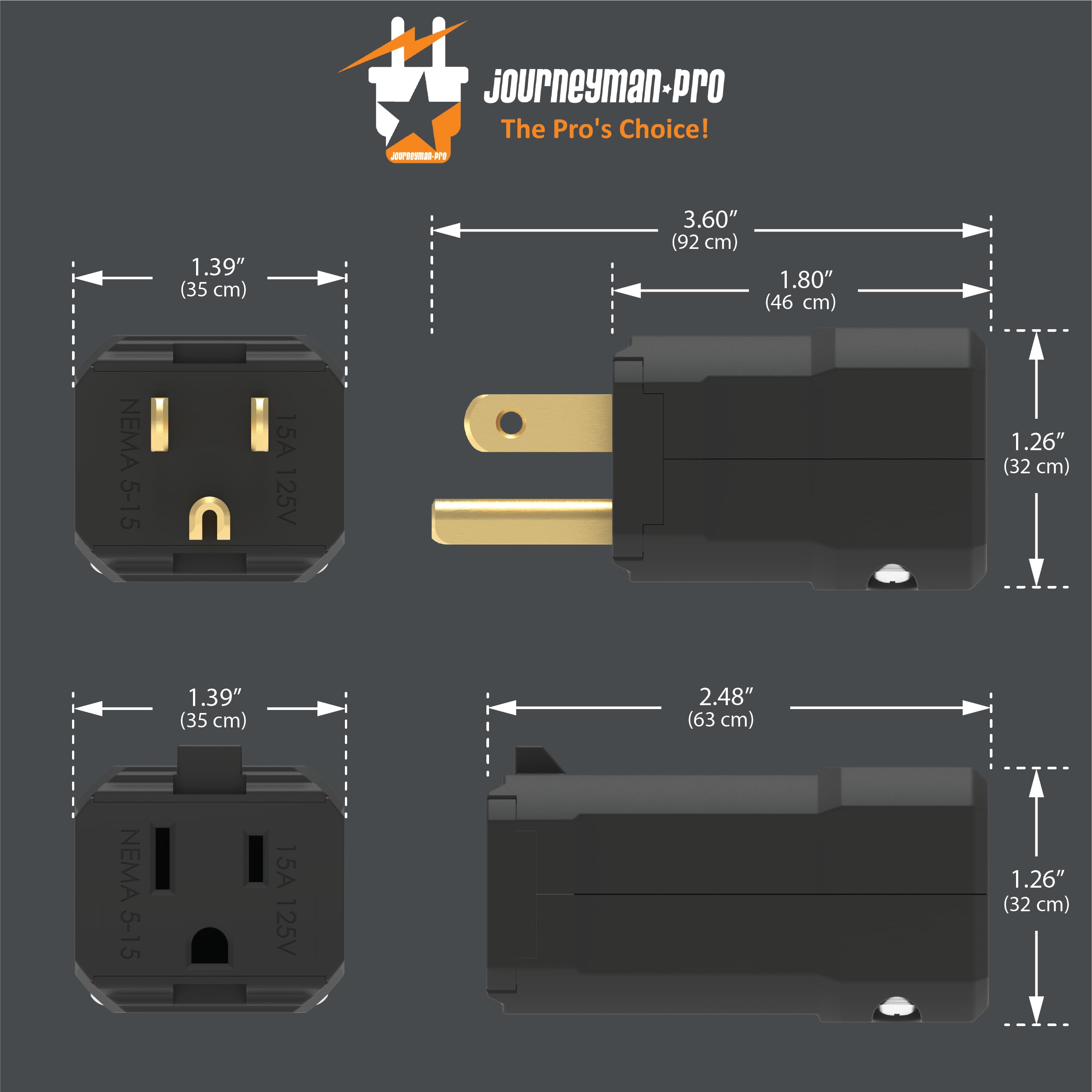 - 15 Amp, 125 Volt, NEMA 5-15R, 2Pole, 3Wire, 1875 Watts, Replacement Plug, Straight Blade