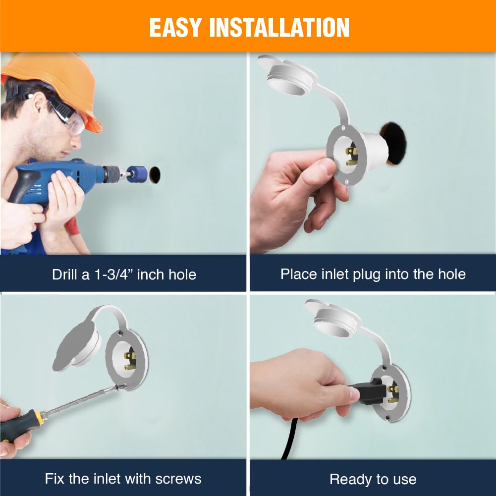 - 15 Amp 125 Volts AC 2-Pole 3-Wire Flanged Inlet w/Weather Proof Front & Back Cover