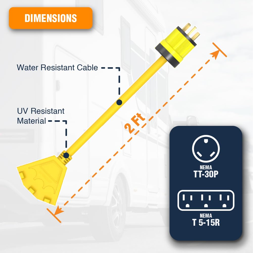 - ✔ UNIVERSAL - TT-30P Socket converts to Triple Outlet NEMA (5-15R Household) RV Generator Rated