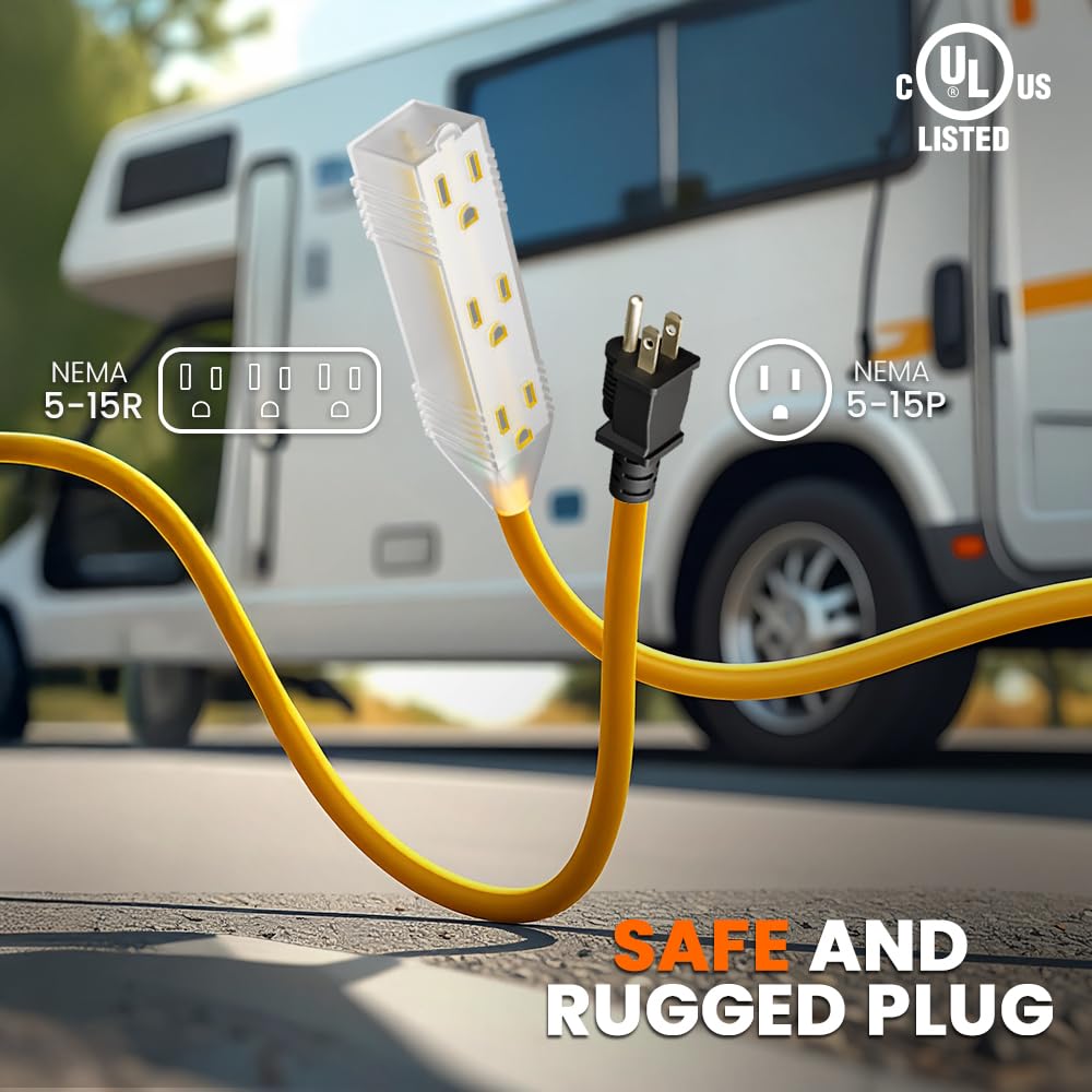 - SAFETY - Lighted end indicates when the power is on! Bright Yellow PVC jacket color makes it easy to locate even in low light conditions
